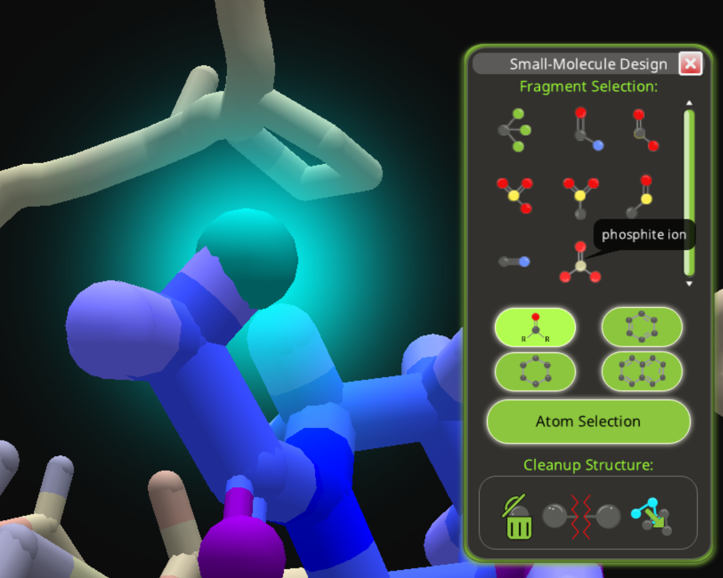 Select a hydrogen, then select the phosphite ion from the functional groups area of fragment selection.