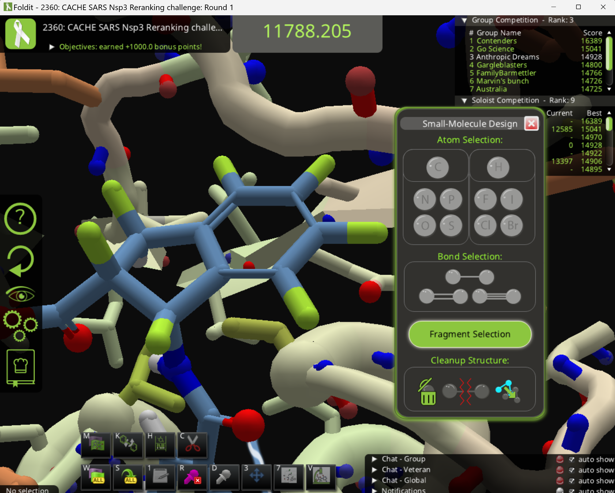 I wrote "cheating" in quotation marks, because I think there are two possibilities. You can use a trick (opening an old puzzle, in release V34 or earlier) to make the Small Molecule Design panel appear. But it is also very well possible that a player simply had the tool at their disposal because their screen is large enough and they just never closed the panel.