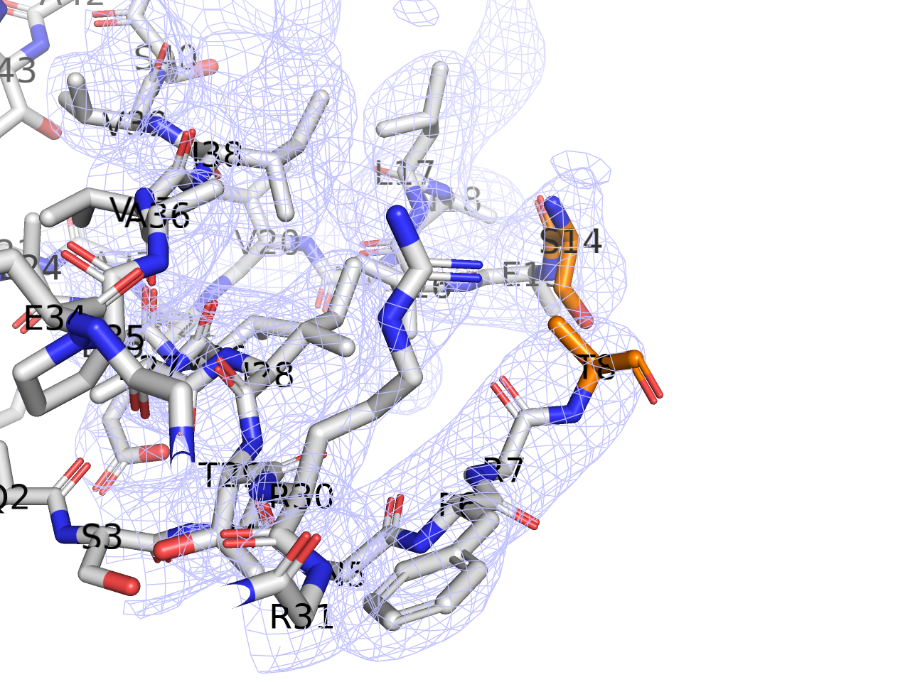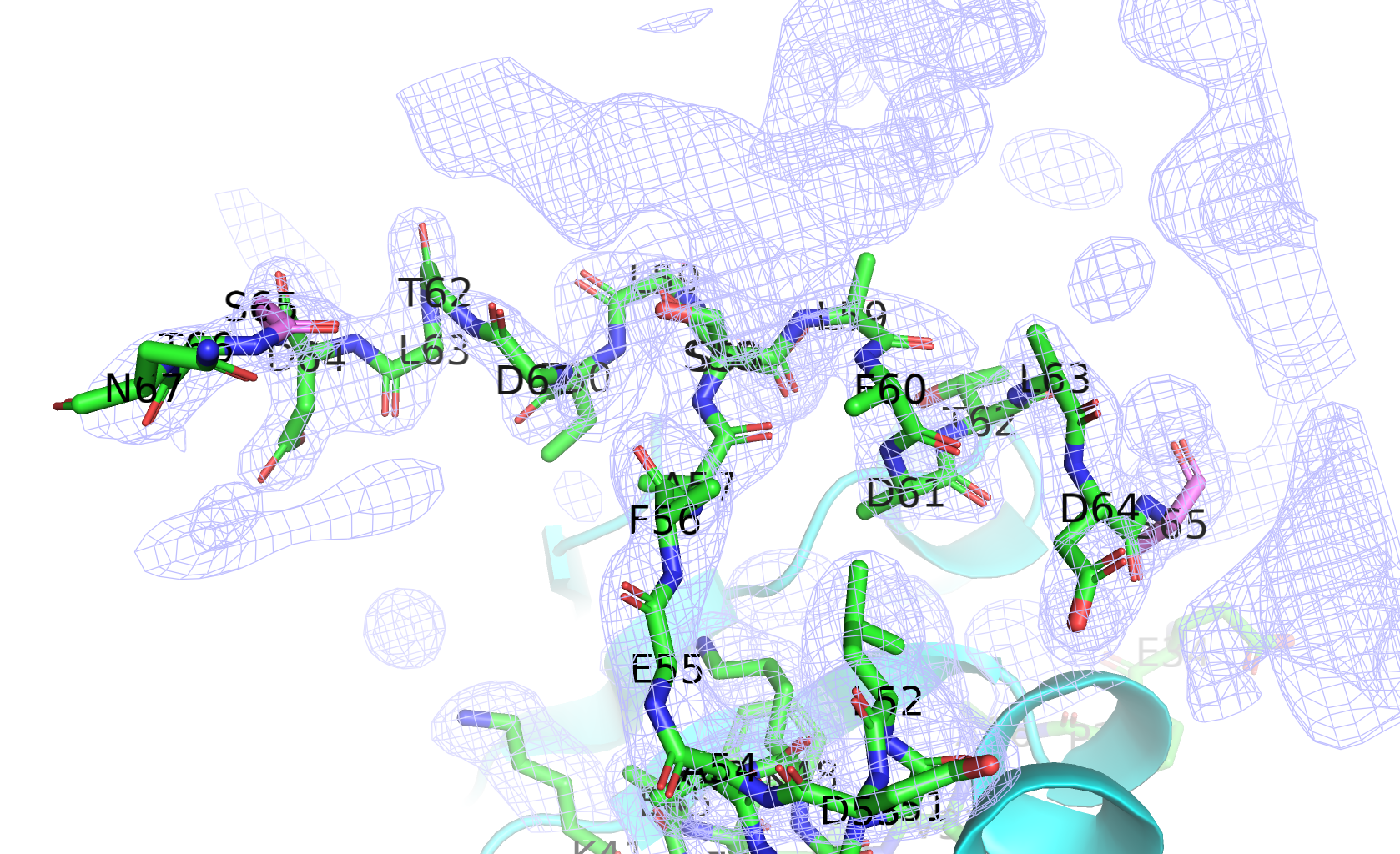 I also assume that when cutting out the density around the protein, altloc B of residues 58-65 in chain A have been ignored, thus the densities are not showing in the game.