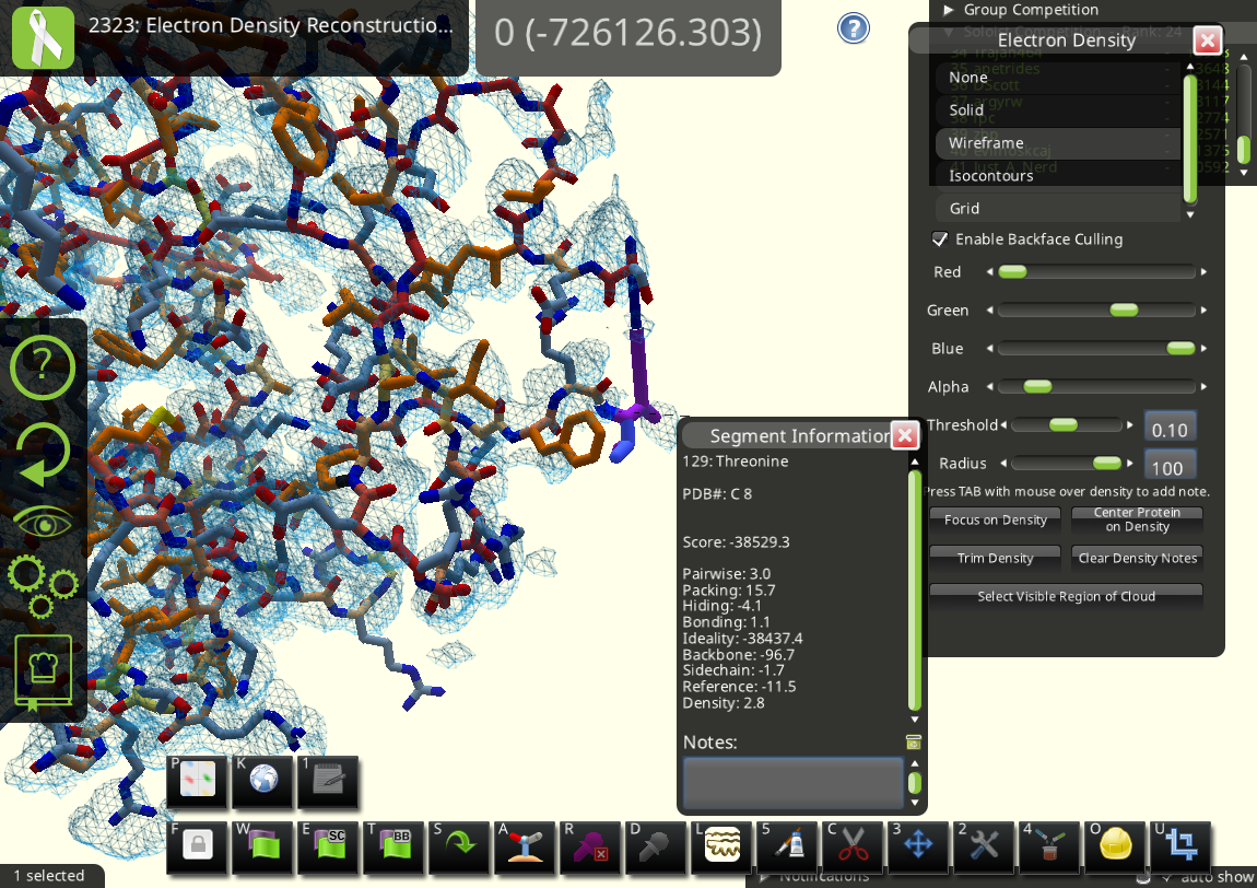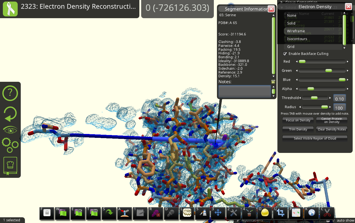 (edit: added another trial for fun. Indeed the density view and the simplified controls in Foldit are more attractive for teaching purpose!)