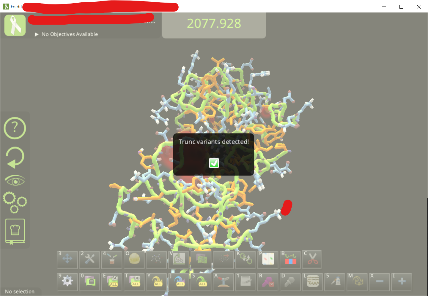 • In this example it seems to be ok to use the files from pdb directly and use FolditStandalone to clean the protein file. However, for entries with more than one molecules in the asymmetric unit or with a lot of non-standard residues, it’s better to clean the file before loading into foldit to avoid errors.