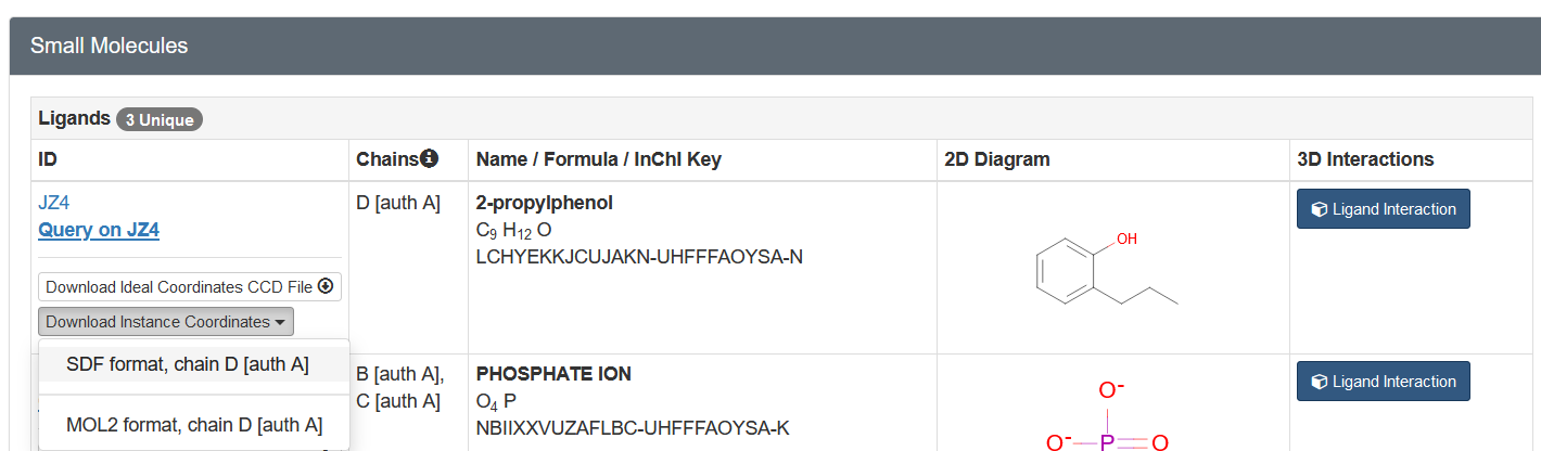 • Scroll down to get the ligand .sdf file