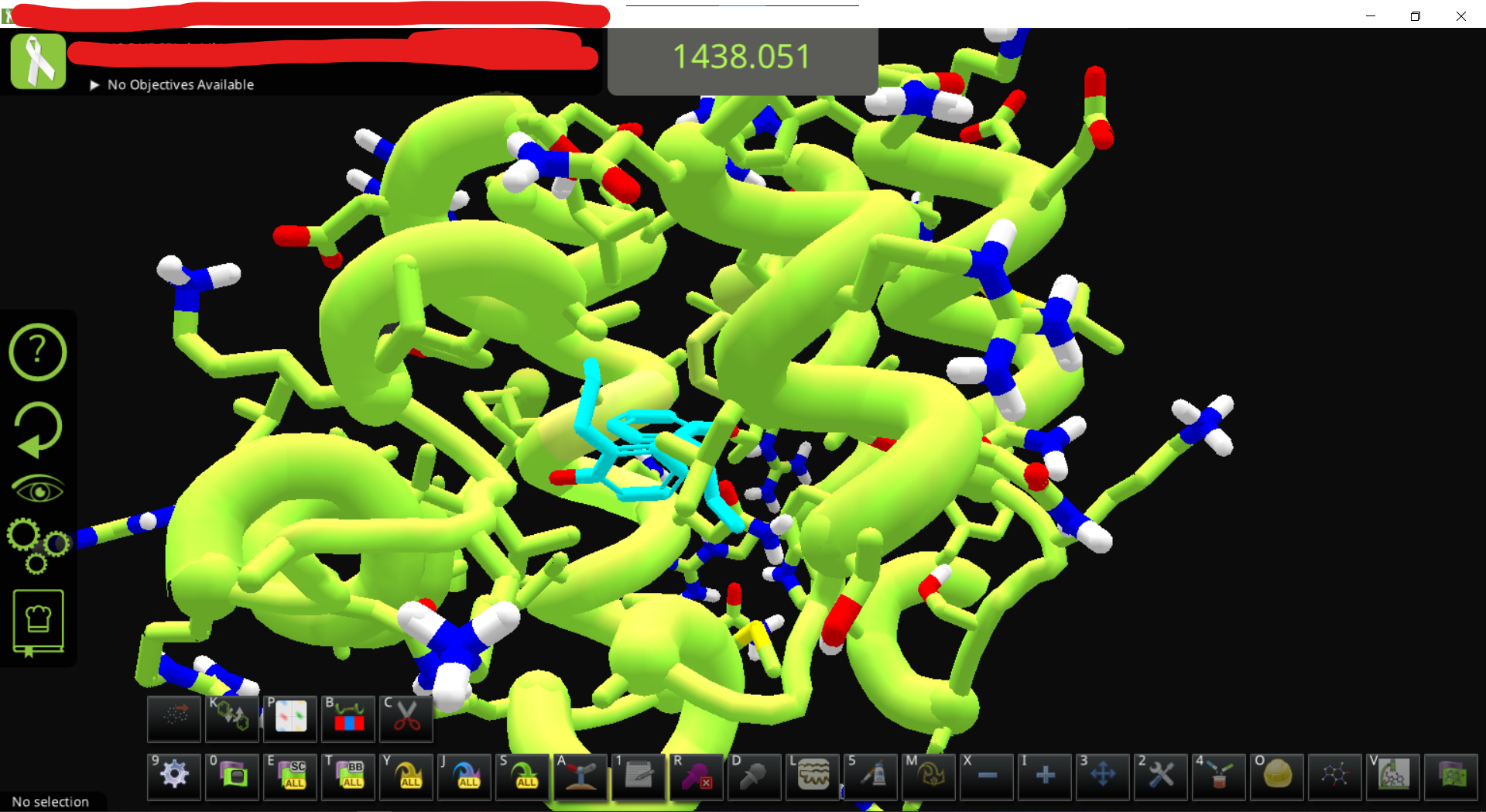 • Export this structure as pdb. Update: Since the saved ligand is different from the originally loaded PDB ligand, after exporting the PDB from Folditstandalone once, the PDB would have the "IRDATA SMILES " lines near the end of the file, so Foldit can now read the ligand automatically.
