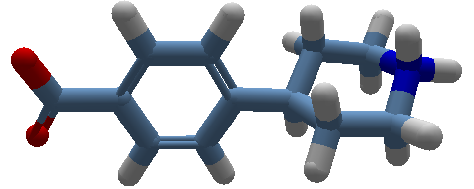 I've come to expect, during the past Small Molecule Design puzzles, that a carboxyl group would lose its hydrogen under the conditions used in Foldit ("deprotonation": C(=O)OH becomes C(=O)[O-]), and that any amine that is not close to a double bond would get an extra hydrogen ("protonation": NH will turn into [NH2+]).