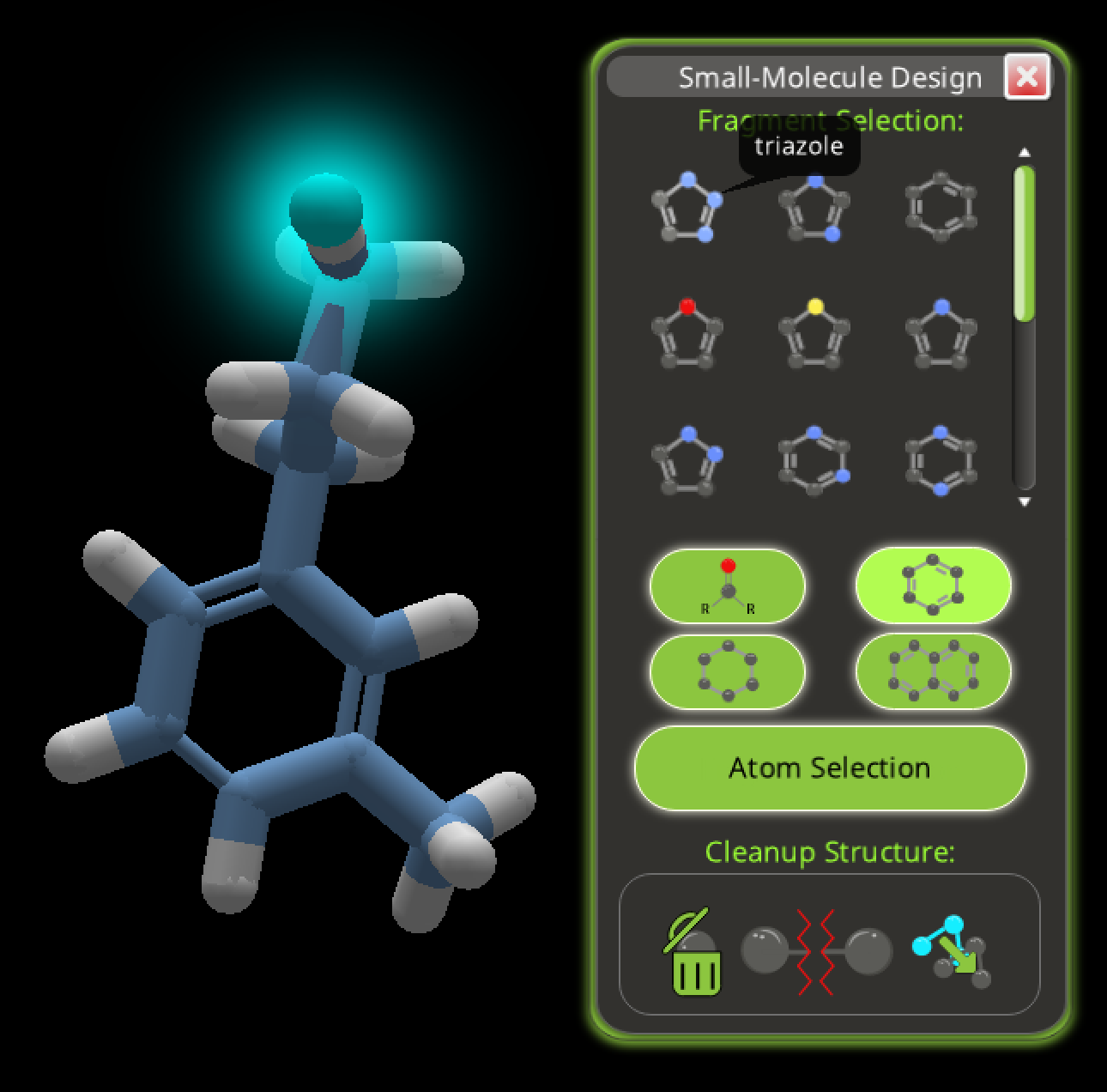 There's no tetrazole fragment available, but the triazole fragment is just a nitrogen short. It's the first one in the "unsaturated cyclics" panel.