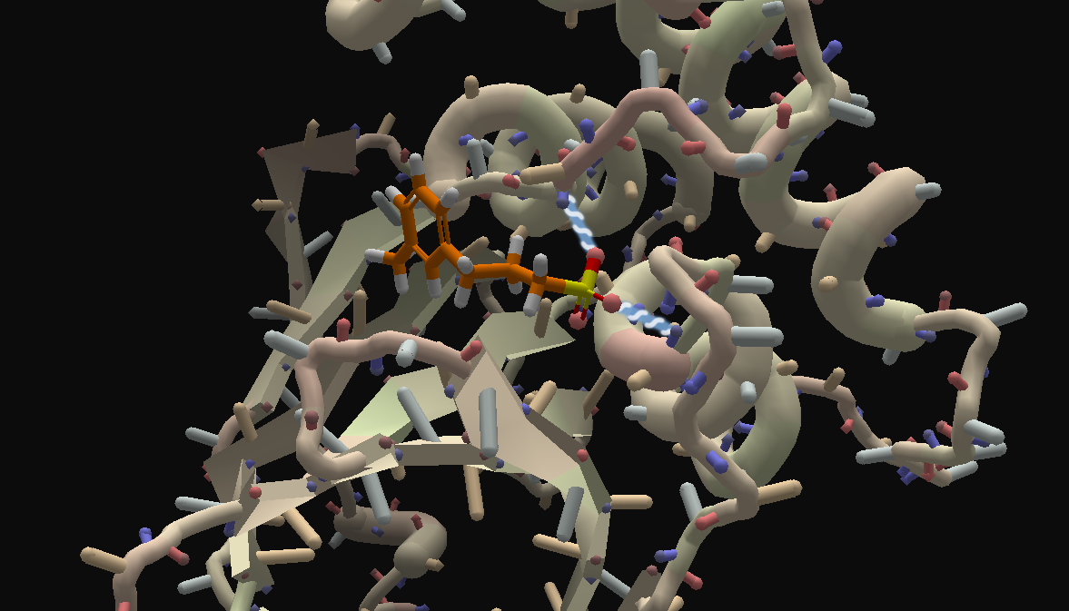 Gives a bonus if the molecule contains either a sulfonate or a tetrazole group. A previous study has shown that molecules containing one of these groups exhibit better affinities, due to their binding to the protein, as illustrated in the following pictures.